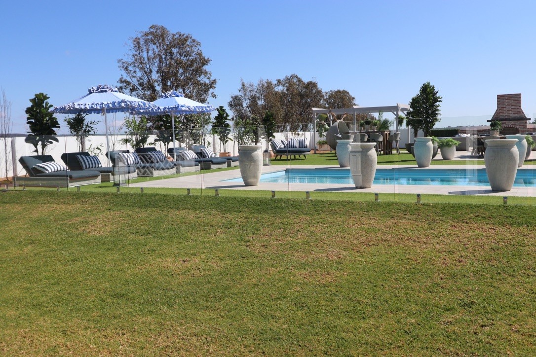 Frameless glass pool fencing used with our marine-grade stainless steel spigots creating a stunning seamless barrier for the pool, outdoor entertaining and recreational area.